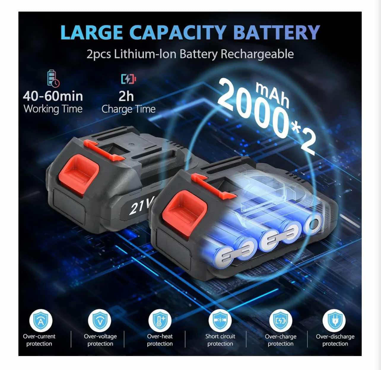Mini drujbă electrică portabilă cu design compact, ideală pentru lucrări de grădinărit și tăieri precise. Cu motor puternic de 3000W și baterie Li-ion de 48V, oferă performanță optimă și autonomie extinsă.