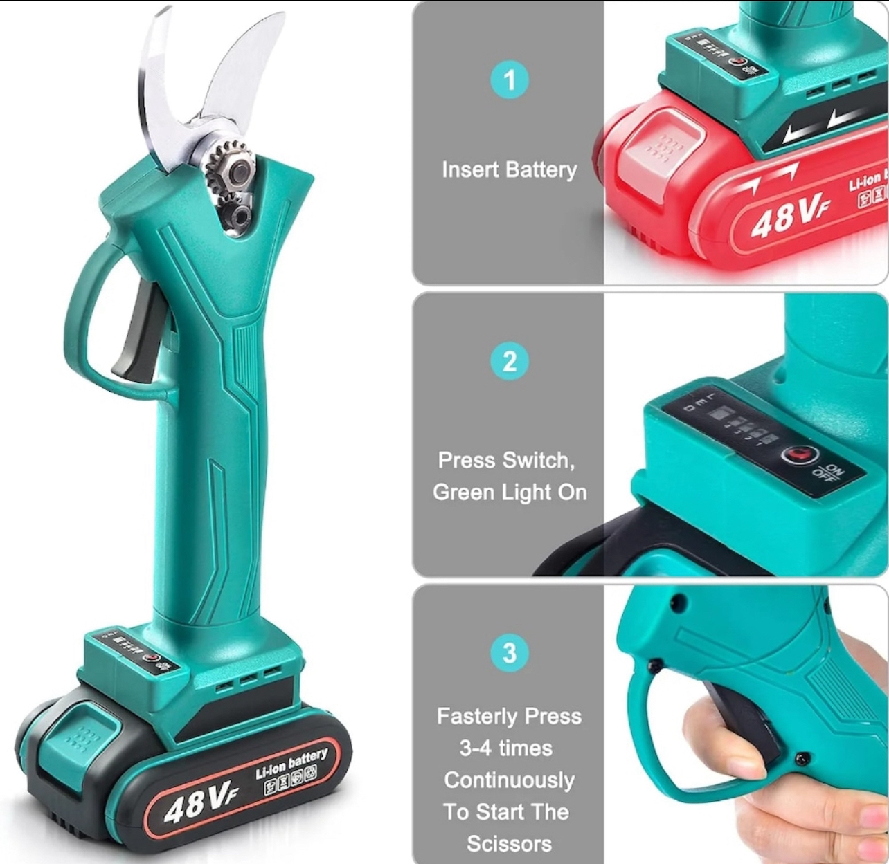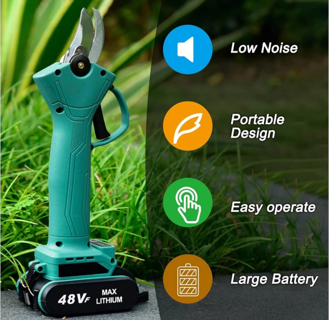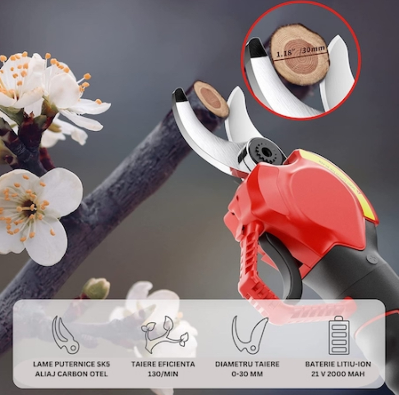 Foarfeca electrica portabila pentru Gradinarit , 2 Acumulatori , Lama din otel Carbon,1 incarcator, design modern, accesorii incluse si valiza de transport