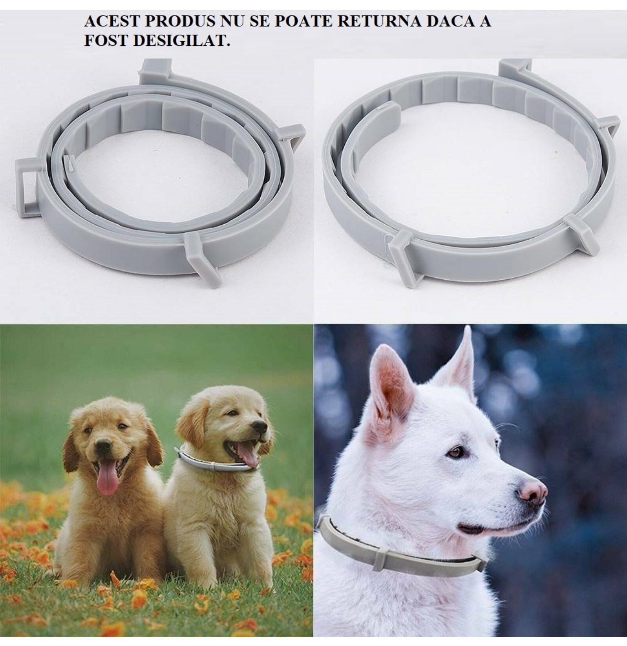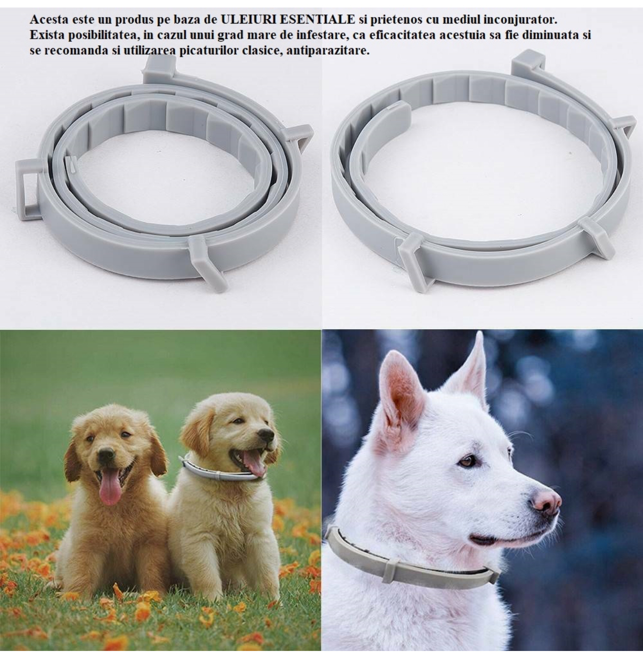 Zgarda Antiparazitara, ALG™, pentru Purici si Capuse, Protectie pana la 8 luni pentru Caini, Fara Alergeni, 38x1cm, Silicon, Gri