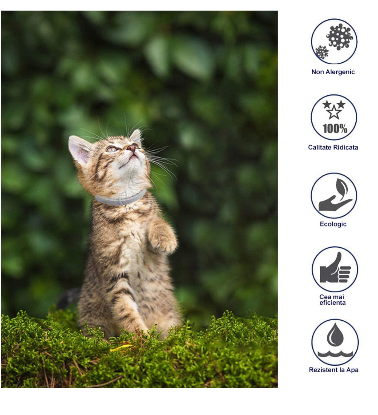 - Zgarda pentru purici pentru pisici/caini: Acesata zgarda va elibera mirosuri de uleiuri esentiale pentru deparazitare si dezodorizare pentru a respinge in mod eficient puricii, capusele, daunatorii, mentinand cainele/pisica dvs. fericit si sanatos.