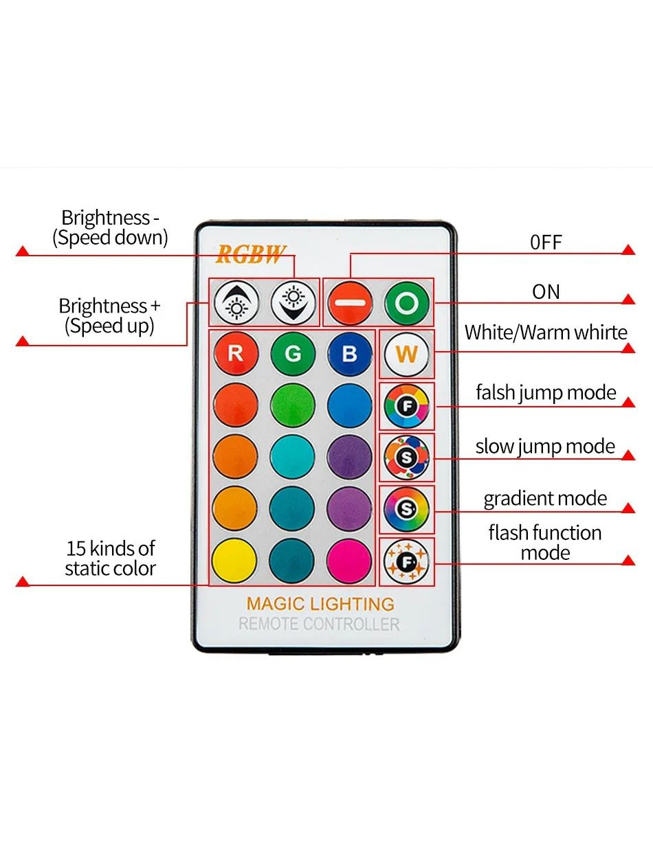 Functii | Oprit / Pornit / Reglare Int. Lumina / 4 Programe /16 Culori |