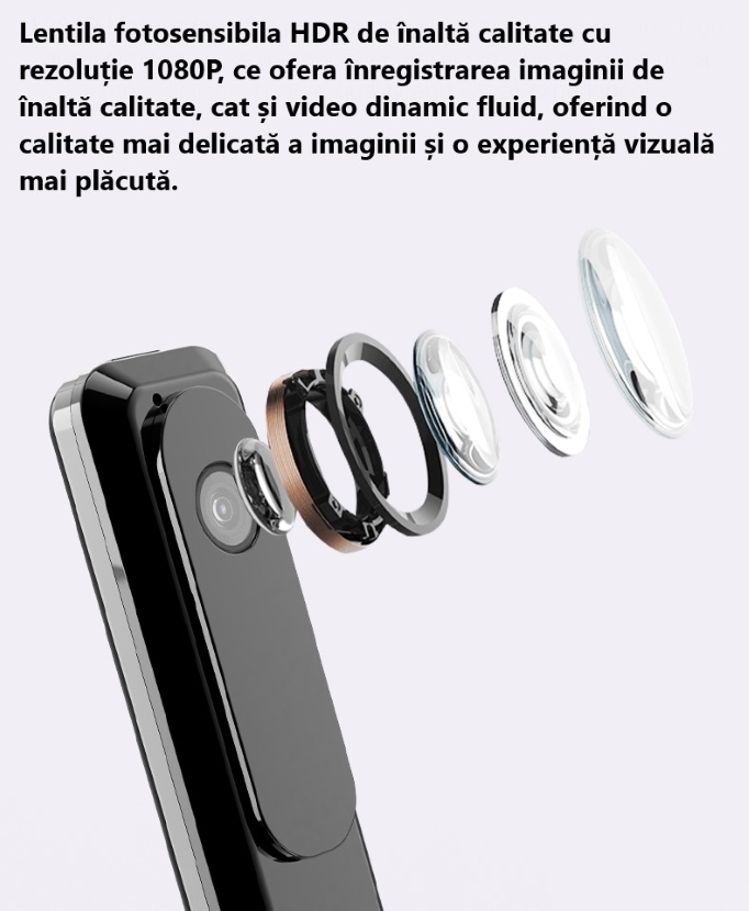Lentila fotosensibila HDR de inalta calitate la rezolutie Full HD,ce ofera inregistrarea imaginilor la o calitate superioara,dar si video dinamic fluid,oferind o calitate mai delicata a imaginii,dar si o experinta vizuala mai placuta,datorita celor 6 lentile de sticla si a noii tehnologii super resolution.